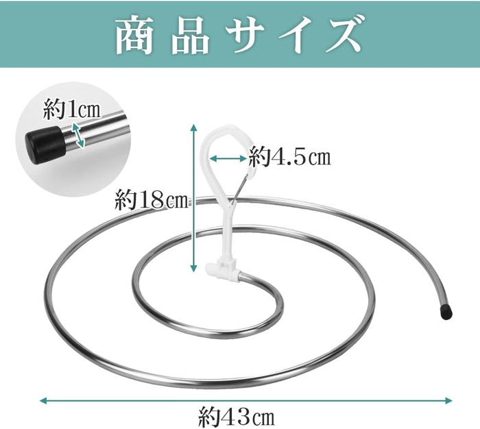 物干し竿に引っ掛けるフックには風が吹いても落下しないように、しっかり固定できる金具を完備。未使用時はフックを折り畳むことでちょっとした隙間に保管可能です。何かと大きな洗濯物が増える夏は効率良く乾かすことが大切です。"夏の洗濯をもっと楽に、もっと快適に!"スパイラルハンガーを活用することで家事の時短にも繋がりますので、この機会にぜひお試しください。