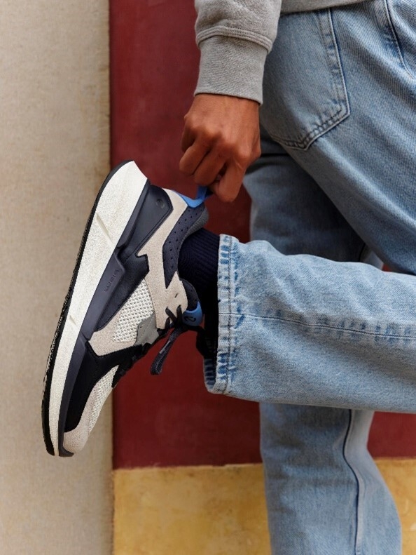 機能性と履き心地を極めたスニーカーでありながら、履く人のライフスタイルに合わせたモダンなスタイルを3タイプ用意しました。イチオシのレザーとファブリックのコンビネーションスタイルは、モダンな見た目と絶妙なカラーリングで他とは一味違うスタイルを仕上げます。ハイエンドのプレミアムレザーのアッパーはアスレティックなフォルムに高級感をプラスしながら パンチングレザーが効いていて通気性にも優れます。そしてエンジニアードメッシュスタイルは、見た目の軽快さと通気性が秀逸な一足。どのスタイルも背面のリボンは視認性を高めるだけではなく、簡単に着脱できるなどの細部までのこだわりを凝縮した一足です。