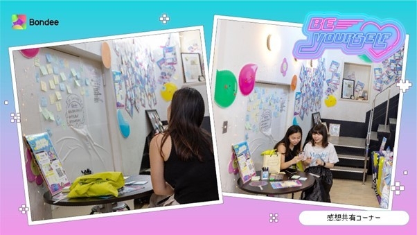 感想共有コーナーのテーマは【みんな何になりたい?】【好きな服は?】【自分の好きなところ!】を設置し、体験の感想や、テーマの回答を貼り付けて、写真撮影やBondeeshipメンバーと意見交流を行いました。