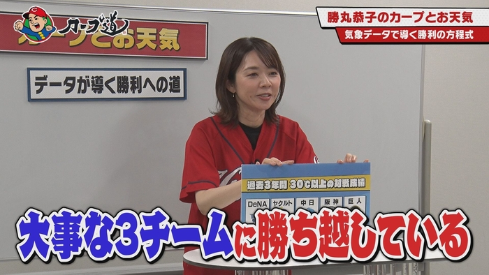 いよいよペナントレースも大詰め!今回は、真夏の屋外球場・ズムスタで気になる暑さについて、カープ大好き気象予報士の勝丸恭子先生が天気と勝率の関係を楽しく解説!