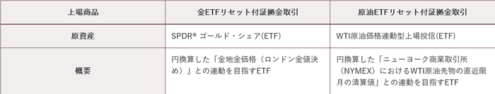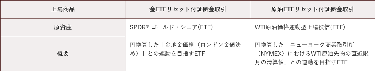 ●金ETFリセット付証拠金取引および原油ETFリセット付証拠金取引上場日について