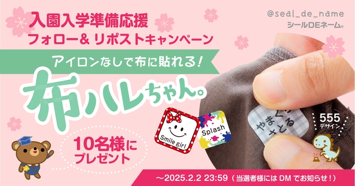 入園・入学準備グッズのECサイト「シールDEネーム」を運営する株式会社サンアドシステム(本社:大阪府大阪市、代表取締役:山根 昭二)は、公式X(旧Twitter)アカウントにて入園入学準備応援「フォロー&リポストキャンペーン」【布ハレちゃん。10名様にプレゼント】を2025年1月28日(火)から2月2日(日)まで実施します。