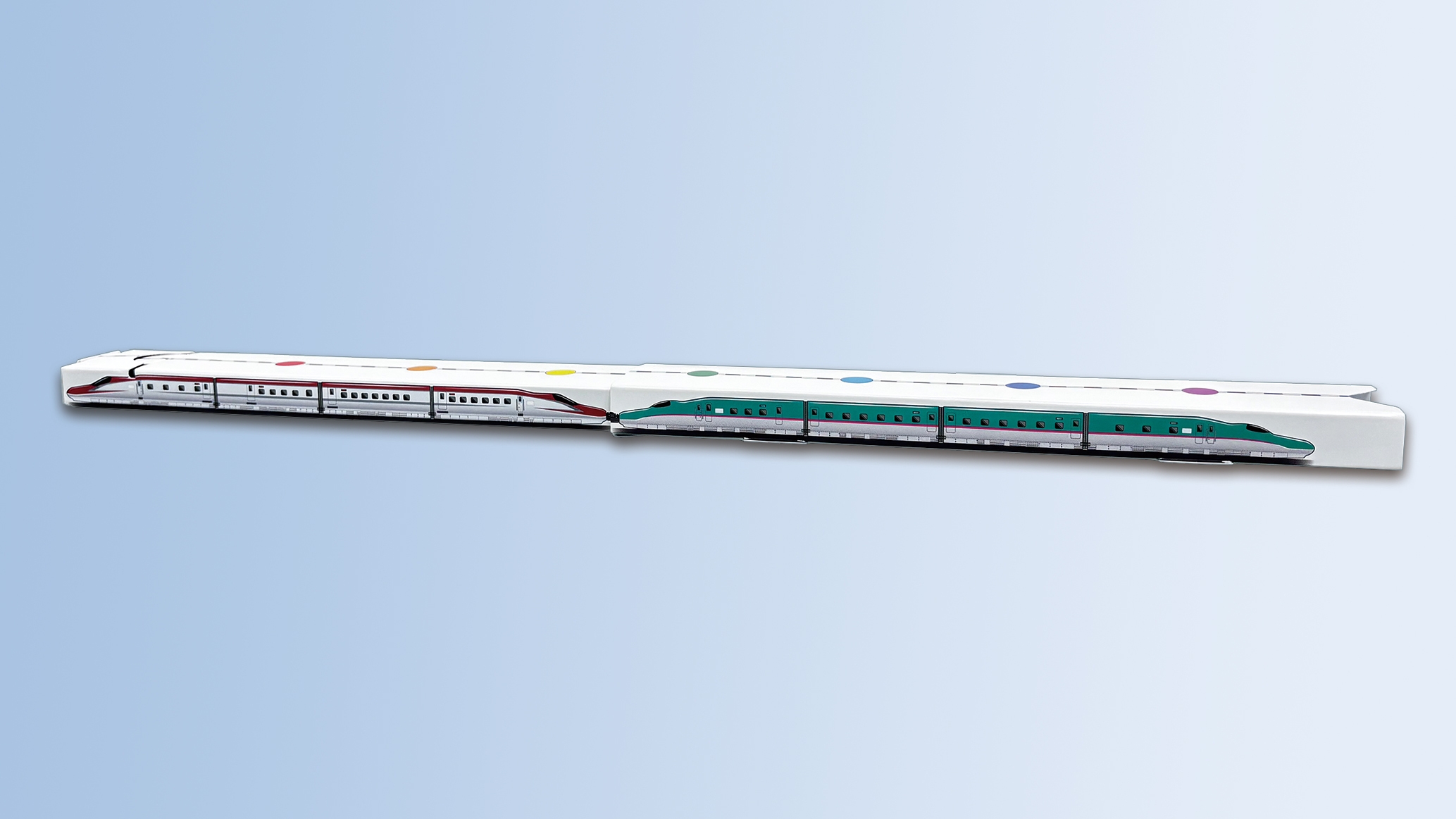 新しく発売されたのは新幹線「こまち」と「はやぶさ」をモチーフにしたデザインで、BinoStretchの訓練距離を伸ばしていくと、「こまち」と「はやぶさ」の連結車両になります(JR東日本商品化許諾済)。