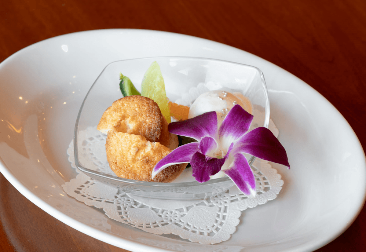 大島バターとプラリネのバターケーキ 自家製ミルクジェラート添え 税込1,100円