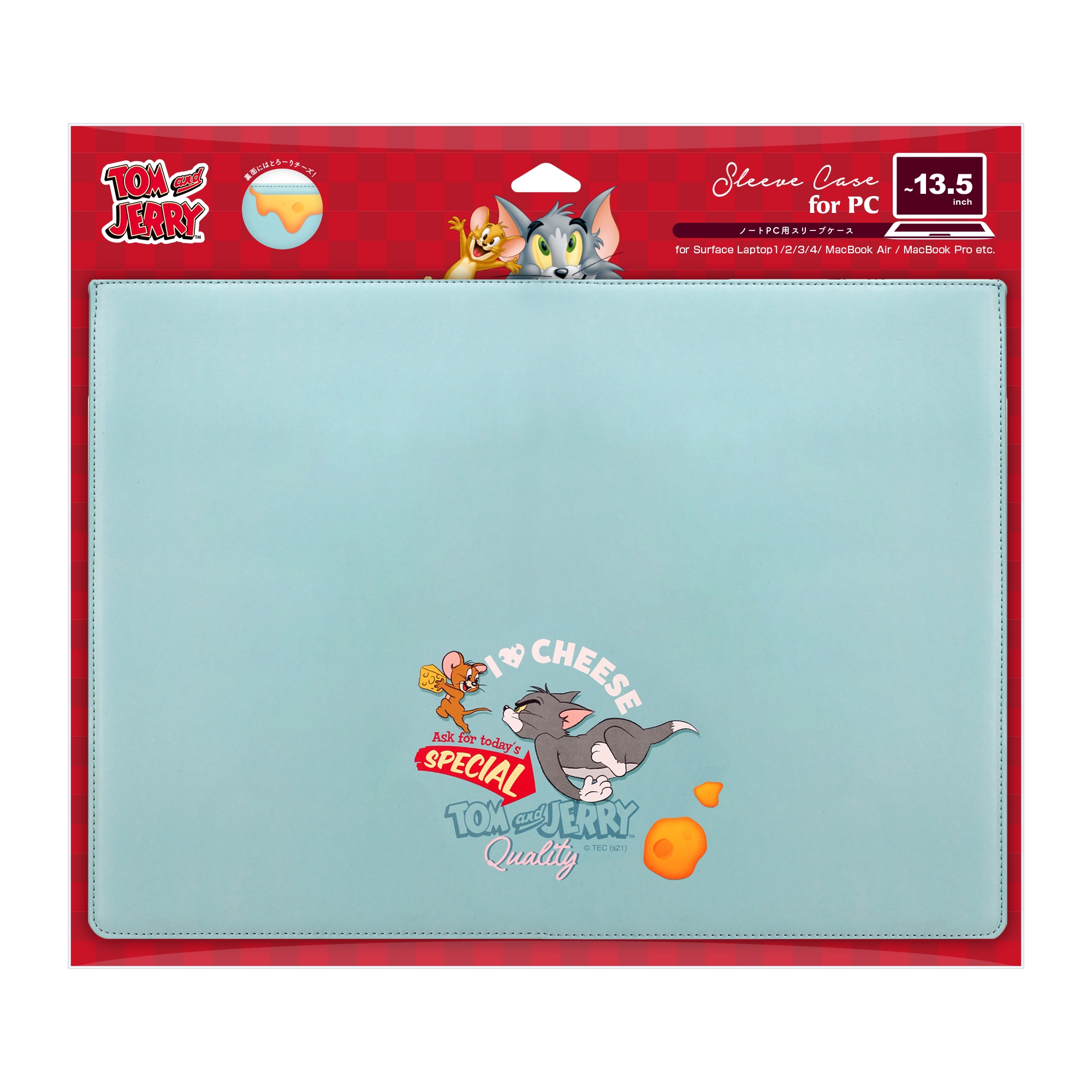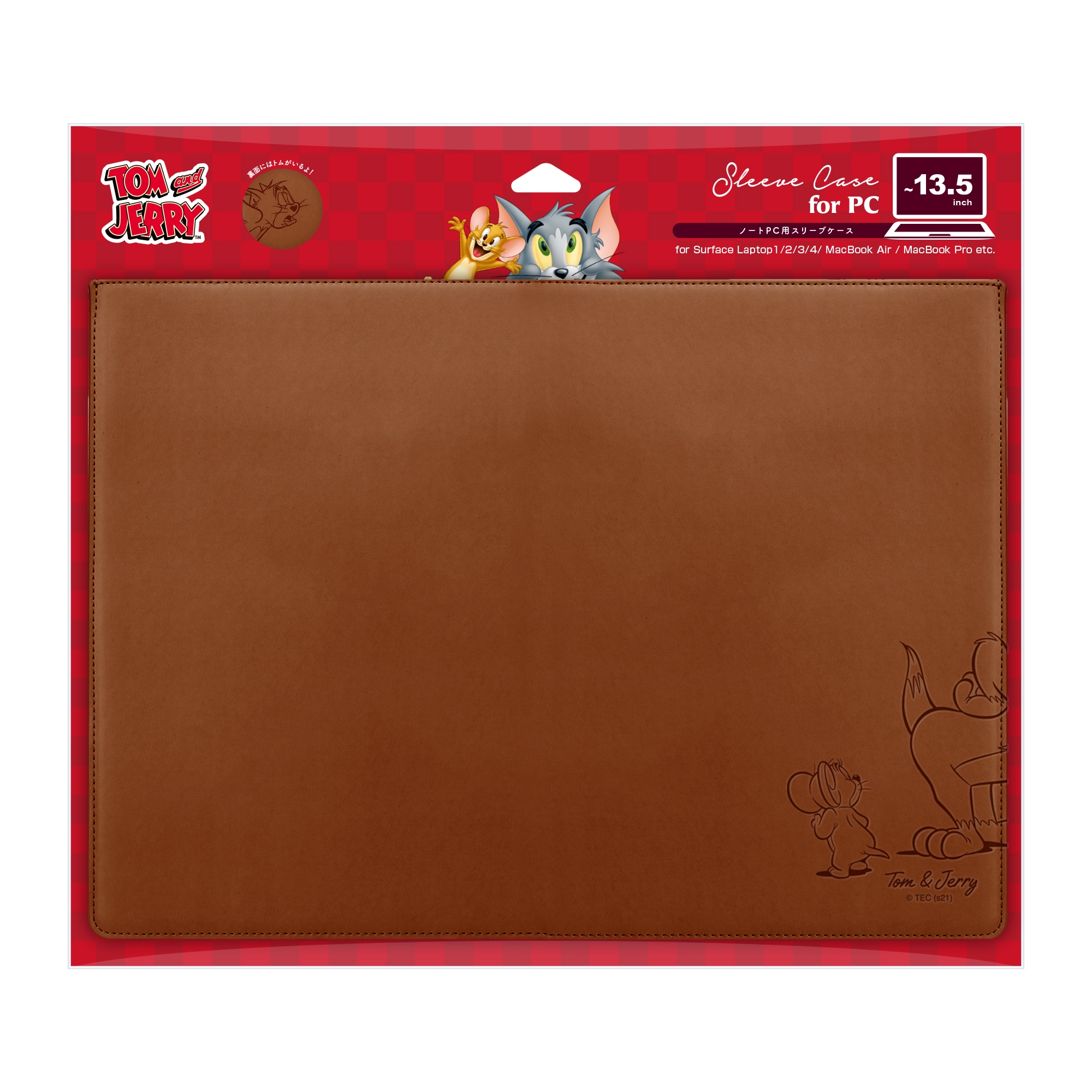 「トムとジェリー」デザインの13.5inchまでのノートPCに対応した汎用スリーブケースです。外側には高級感のあるPUレザーを採用し、内側はノートPC本体を優しく包み込むスウェ―ド調の生地を採用しキズや衝撃からノートPCを守ります。軽量・スリム設計でカバンにもスッキリ収納。マウスパッドとしても使用可能なので外出先でのマウスの操作にも便利です。収納可能サイズは横幅が約315mm、高さが約224mm、厚みが約17mm以内となります。シックな型押しタイプと人気のプリントタイプ。