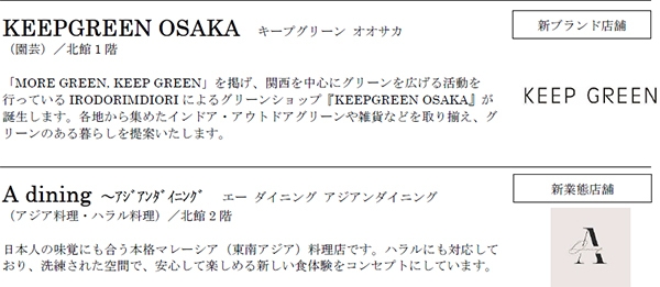 グラングリーン大阪 ショップ&レストラン 施設概要