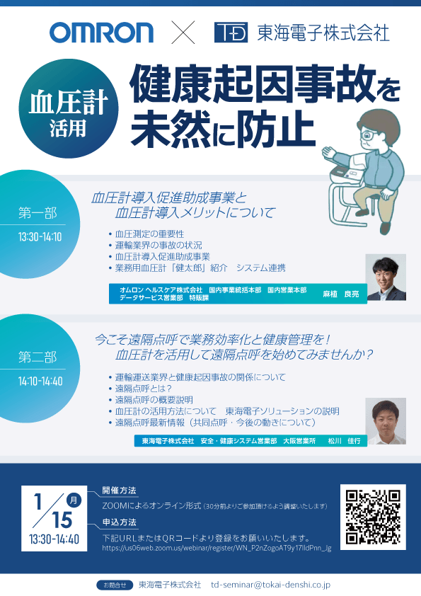 【オムロン ヘルスケア×東海電子】血圧計活用 健康起因事故を未然に防止 無料ウェブセミナー1月15日(月)開催のお知らせ