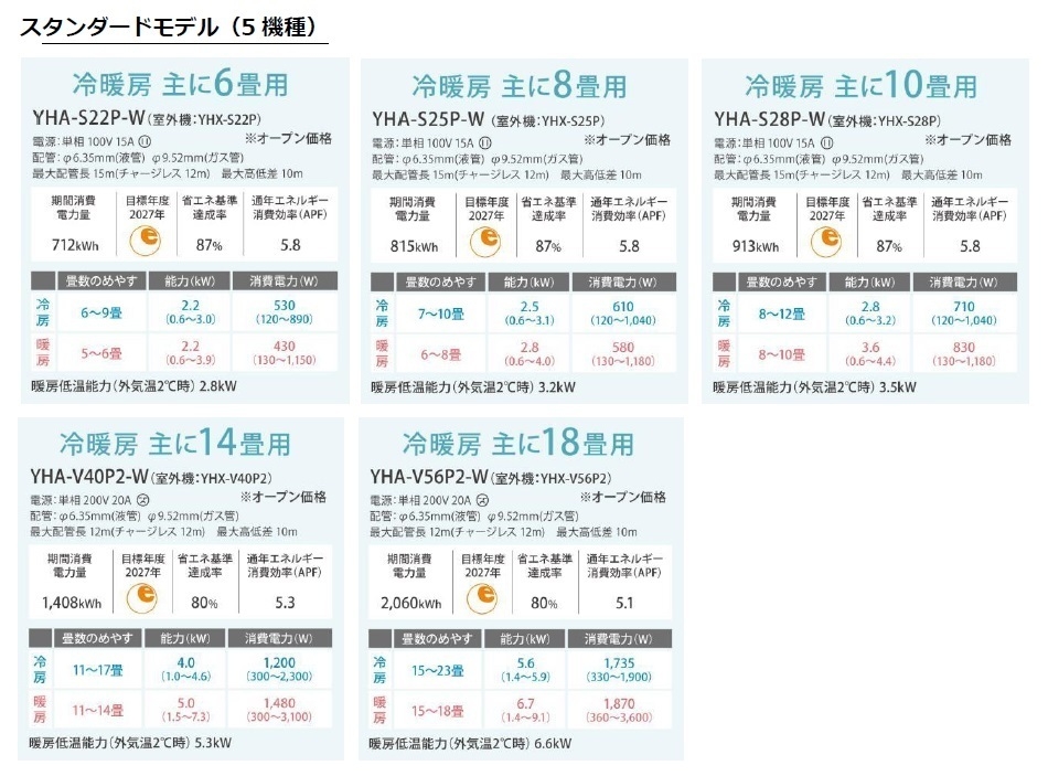 ※スタンダードモデルの換気機能付きは4.0kW・5.6kWのみ