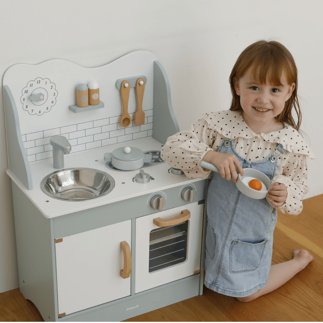 くすみグリーンカラーがおしゃれ♪ まるで本物のようなおもちゃのキッチン。