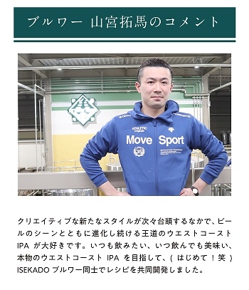 クリアなオレンジの外見にアルコール7.0%、IBU65のウエストコーストIPAの黄金比で仕上げました。ホップの香りをより際立たせるために、ボディ感は残しつつもモルト由来のアロマフレーバーを必要最低限になるよう仕込み工程とモルト配合に工夫を施しました。ホップは「いつものISEKADOと違い感じる」「アロマでハッとさせたい」をテーマにメインにはベリーやスイートフルーツ、ダンクなニュアンスが特徴のストラータを採用しています。またストラータ以外にもダンクなニュアンスを与えるホップを配合してアロマとフレーバーに厚みを持たせました。