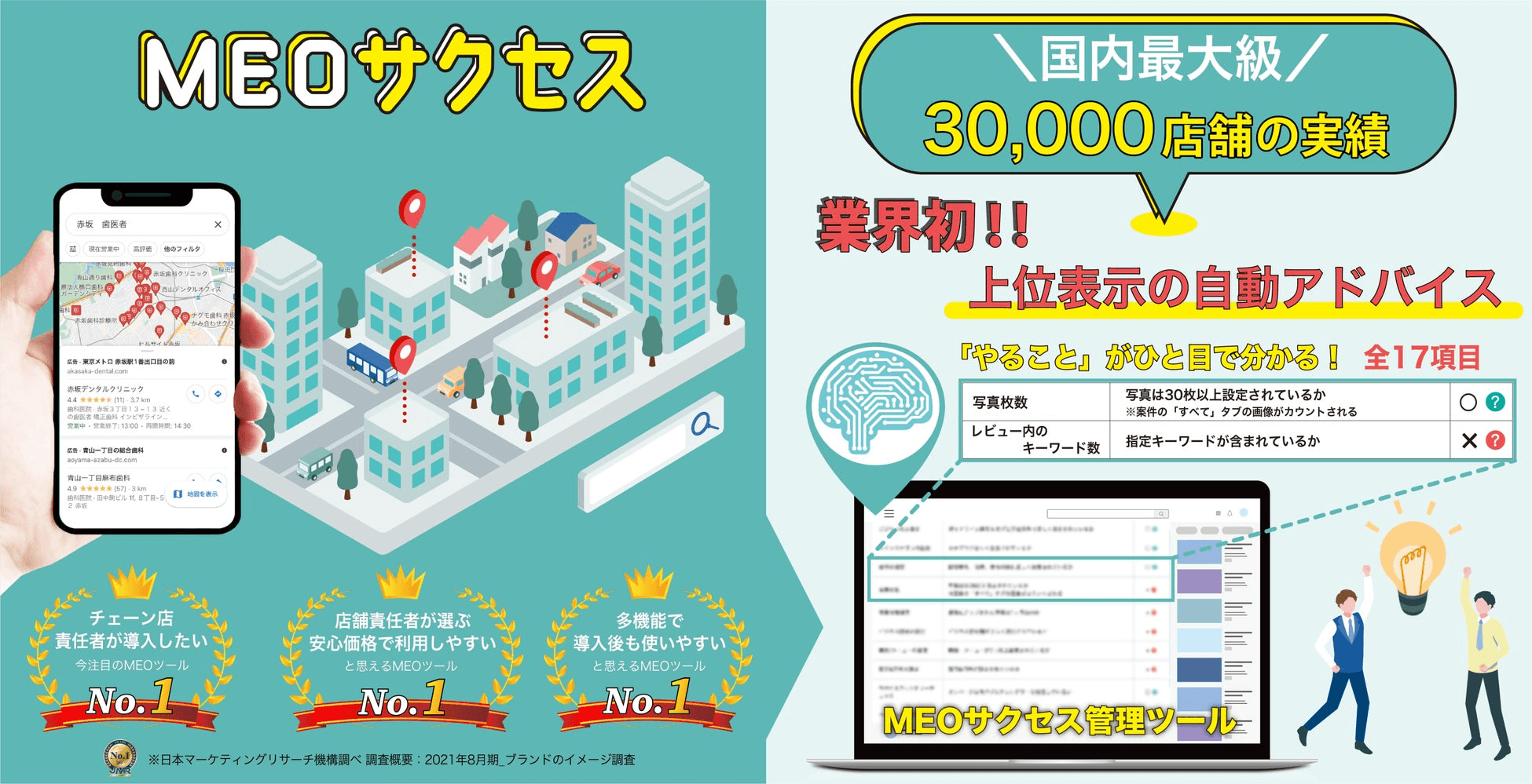 【ご好評につき延長決定!】Googleマップの上位表示を徹底追求したMEOツール「MEOサクセス」の初期費用・月額費用0円キャンペーン