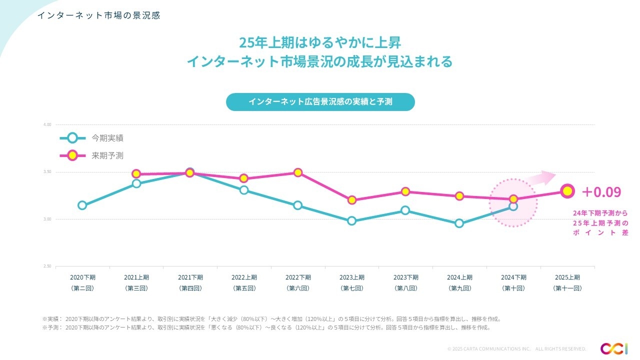 これらの調査結果をもとに、2025年上期のインターネット市場の動向は、緩やかに上昇することが予想される。