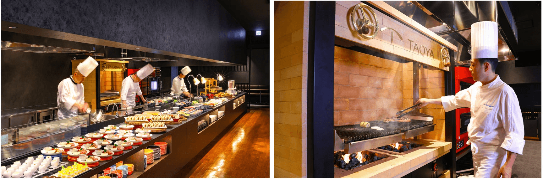 ライブキッチンには、先行してオープンしている他のTAOYAや全国の大江戸温泉物語の宿にも無い「薪グリル」を導入いたしました。