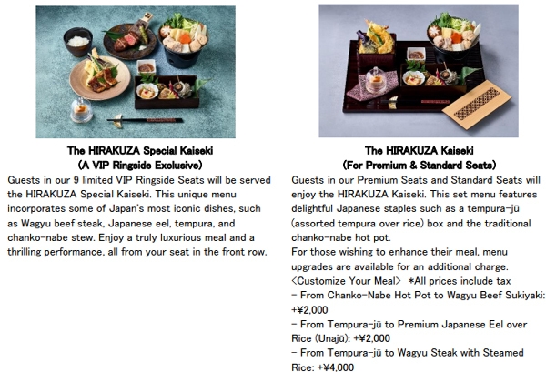 ・The sumo performance and your meal proceed seamlessly, creating a simultaneous experience to delight the senses of sight, taste, and touch.