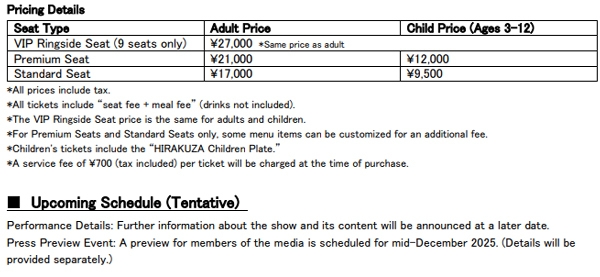 ※すべてのチケットには「座席料+お食事代」が含まれます(ドリンク別)。