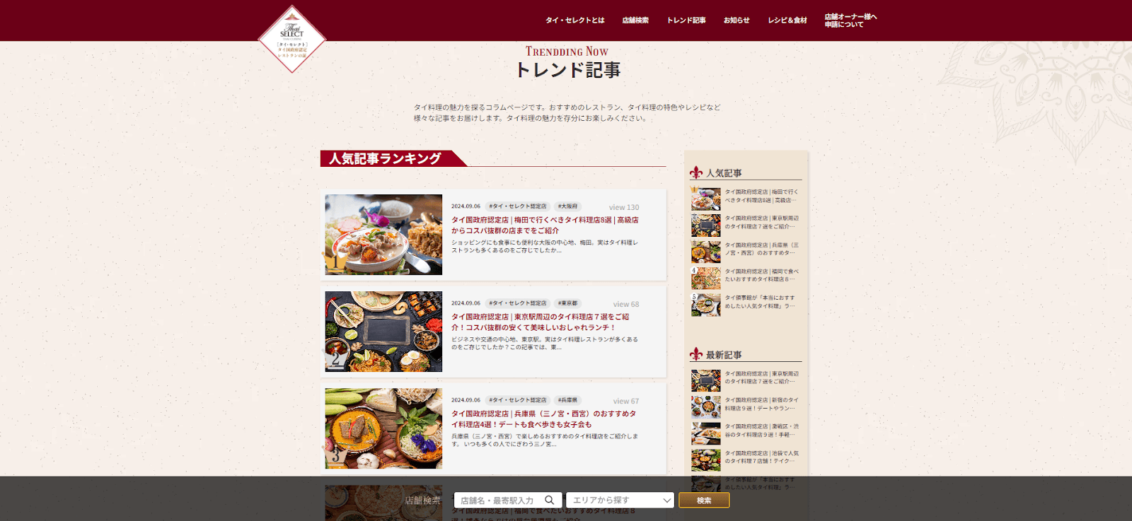 今回のリニューアルで、タイ料理の魅力を発信する「トレンド記事」機能を追加しました。