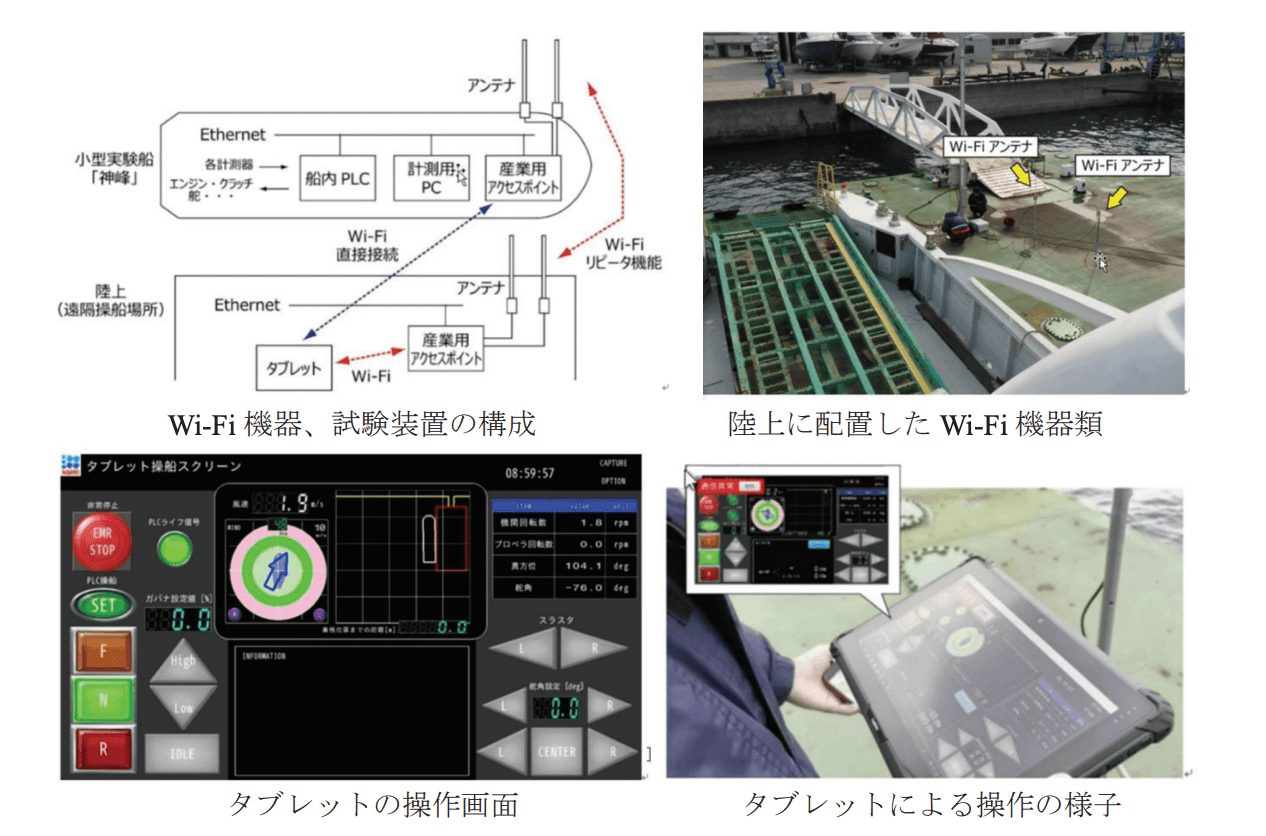 公開実験では、弊所が所有する小型実験船“神峰”(図1)を用い、短距離遠隔操船システム(図2)により、桟橋からタブレットを使って遠隔操船する様子をオンライン(ウェビナー形式)で公開します。(荒天時は、録画された動画で実験の様子をお伝えします。予めご了承下さい)公開実験当日は、参加された皆さまからのご質問にもお答え致します。