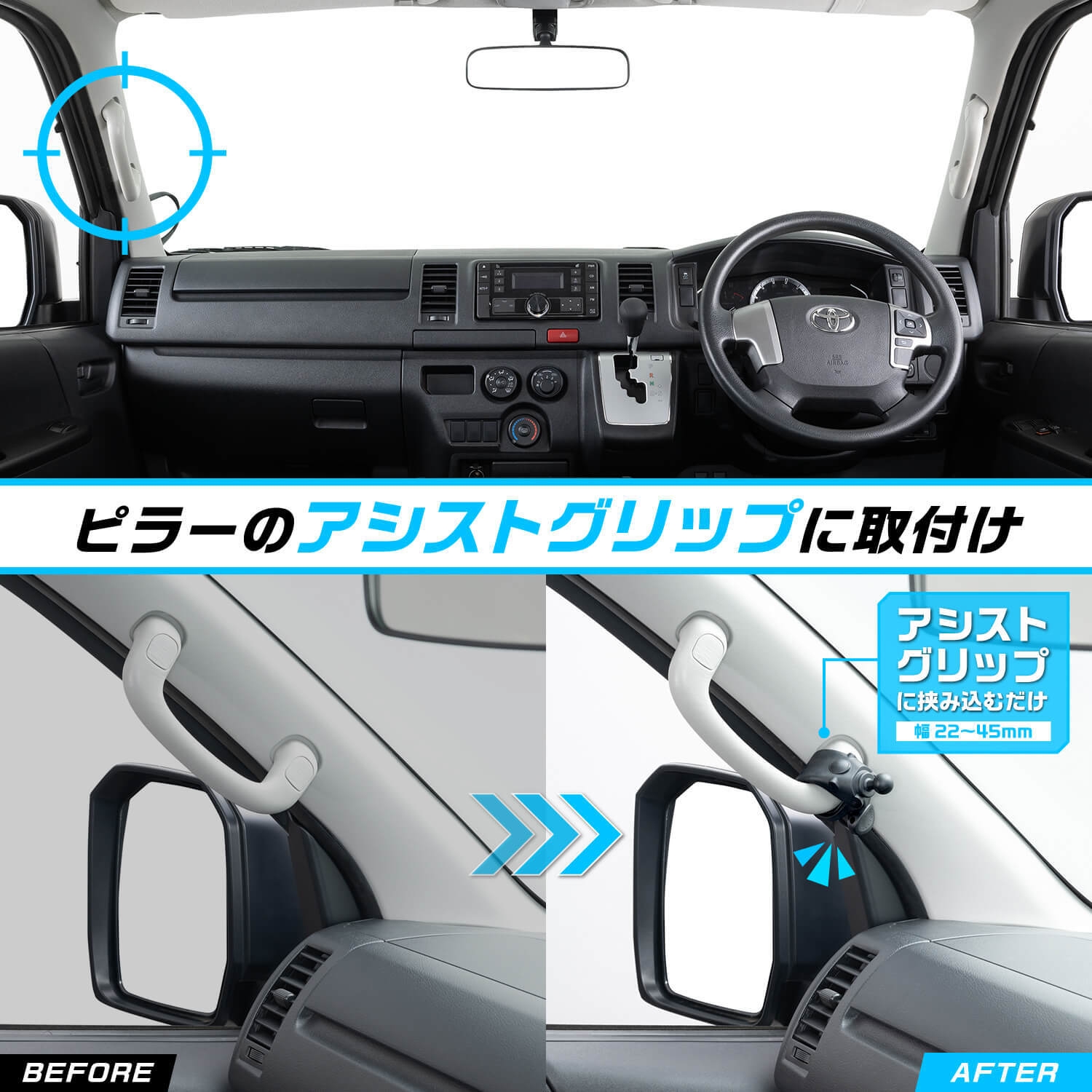 ピラーアシストグリップに簡単取り付け! 広視野角で死角をカバーするデジタルサイドミラーを新発売