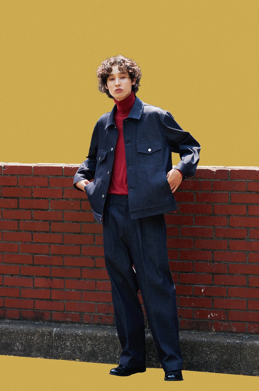 展開アイテムは、着丈を少し長めに、ゴージラインを低く設定した4ボタンのダブルブレストジャケットや、サードタイプのGジャンをベースにしたセットアップなど、クラシックな要素を取り入れながら現代風にアレンジしたデザインが特徴です。その他、レトロなチェック柄コート、モードな雰囲気漂うブラックのキルティングコートなど幅広く展開します。また、バンドカラーやワークシャツに加えて、イエローやロイヤルブルーなどの鮮やかなカラーを打ち出したタートルネックニットなど、コーディネートを意識した提案を強化していきます。