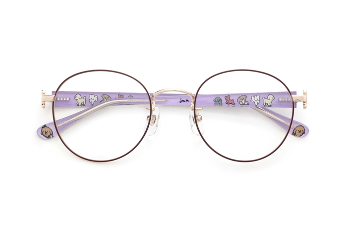 フレームの内側には、じゅんさんデザインのワンちゃんたちがいろんな表情で顔を覗かせ、メガネと一緒に寄り添ってくれます。