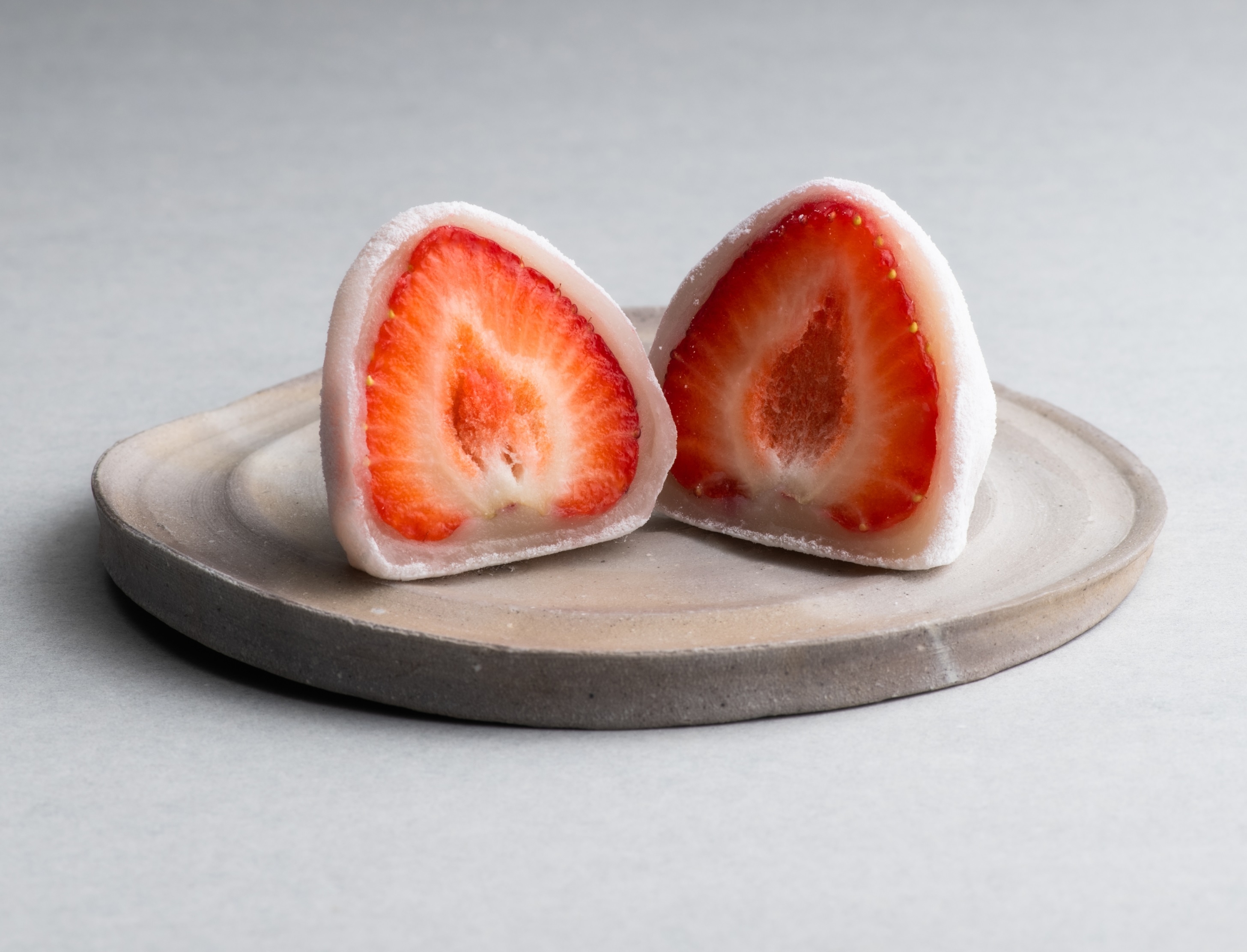 あまおうのほどよい酸味と爽やかな甘味が白餡と求肥によく合う、定番のフルーツ大福。あまおうが丸ごと入った贅沢な一品です。