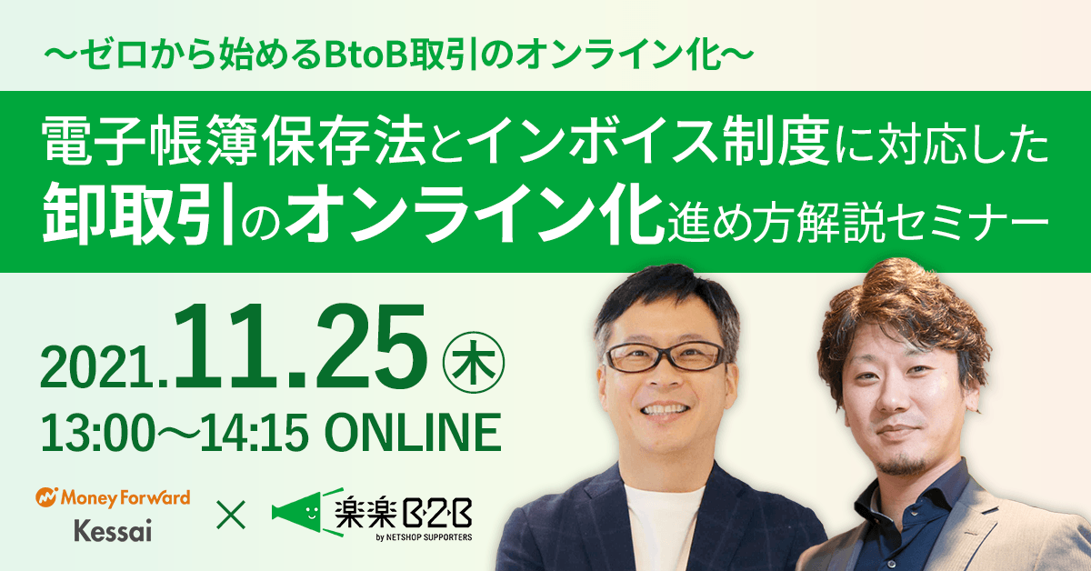 【11/25オンライン開催】~ゼロから始めるBtoB取引のオンライン化~ 「電子帳簿保存法」と「インボイス制度」に対応した卸取引のオンライン化進め方解説セミナー