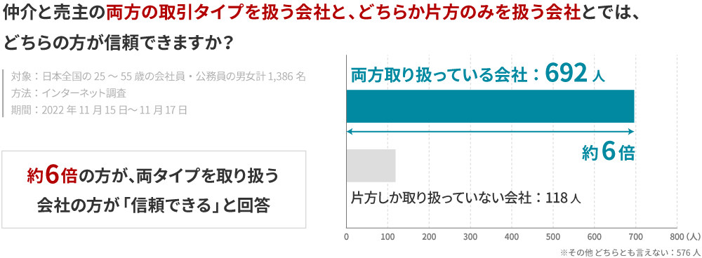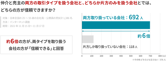 (3)両タイプを取り扱う会社は、片方のみの会社と比べて約6倍の信頼を獲得している