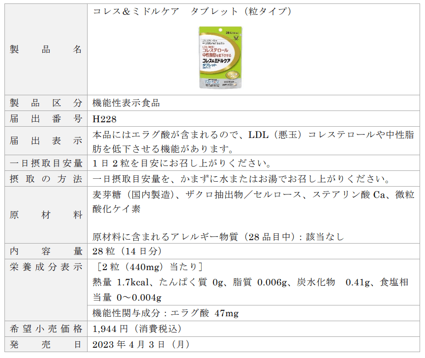 大正製薬株式会社[本社:東京都豊島区 社長:上原 茂](以下、当社)は、セルフケア応援ブランド『Livita(リビタ)』の生活習慣ケアシリーズから、機能性表示食品の「コレス&ミドルケア さらっとおいしい青汁」と「コレス&ミドルケア タブレット(粒タイプ)」の2品を4月3日(月)より、新発売いたします。