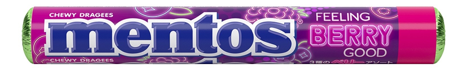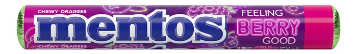 「メントス フィーリングベリーグッド」は、カシス、ブルーベリー、ラズベリーの3種類のベリーが織りなす、甘酸っぱい味のハーモニーが魅力の新フレーバーです。1本に3種類のフレーバーが入っているので、気分によって、選ぶ楽しみも。噛んだ瞬間のカリッとした食感とともに、酸味と甘みの絶妙なバランスが“ジュワッ”と口いっぱいに広がります。ベリーの爽やかな甘酸っぱさで、気分をリフレッシュできる一粒です。