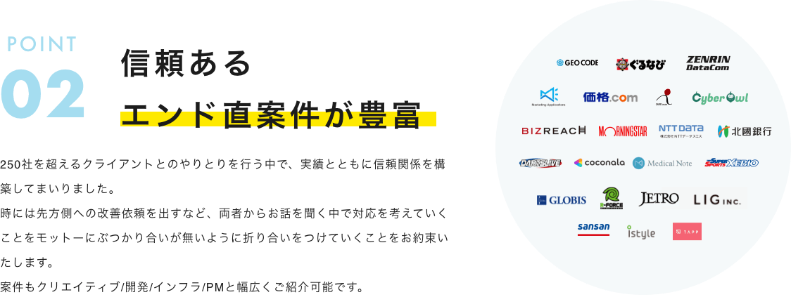 ②大手エージェントに引けを取らないクライアント直案件数