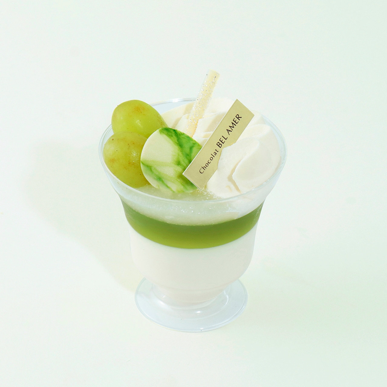 さっぱりとしたヨーグルトのパンナコッタに白ぶどうジュレ、ライチジュレを合わせました。