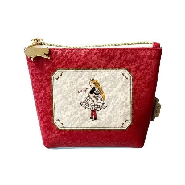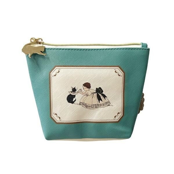 女の子と猫のイラストがあしらわれたレトロで可愛らしいデザインのポーチです。フレームの中に描かれていることで、まるで絵画の様な雰囲気を醸し出しています。