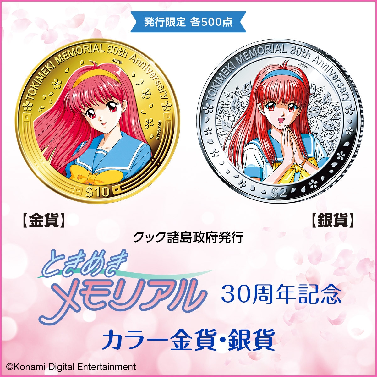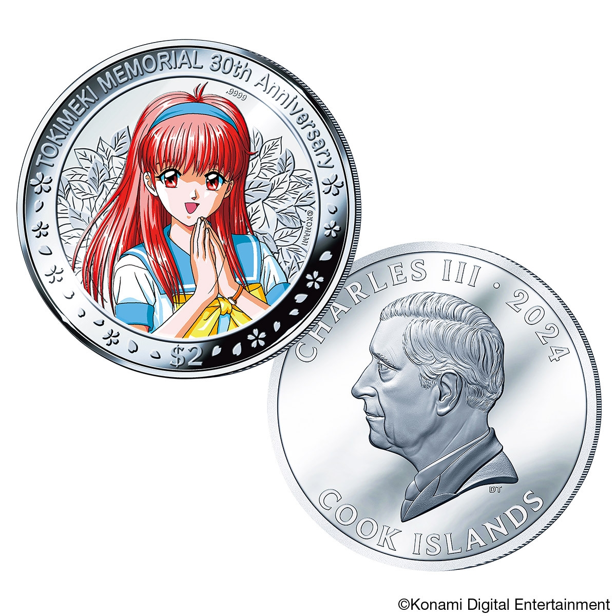 1994年に発売され、後にシリーズ化された恋愛シミュレーションゲーム『ときめきメモリアル』の30周年を祝して、永遠のヒロイン・藤崎詩織の姿が浮かび上がる金貨と銀貨が登場しました。