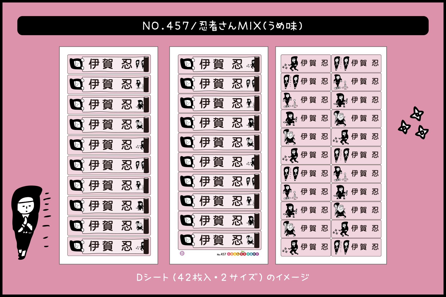 555種類以上のオリジナルデザインで展開している「お名前シール」。子ども向けデザインが多い中で、大人もつかえるデザインとしてラインアップしている[忍者デザイン]は、3カラー展開で販売中です。