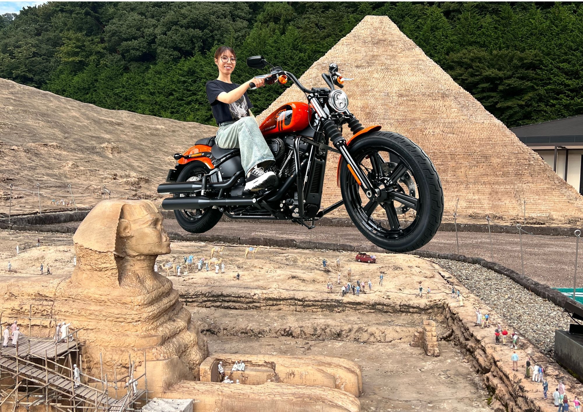 園内各ゾーンに実車の「ハーレーダビッドソン」を展示し、まるで“ハーレーで世界旅行”をしているような写真が撮れる、展示物とハーレーとのフォトセッションや、実車にまたがりエンジンをかけて行う「ジャンプスタート体験」では、実際の乗車に近い疑似体験と、ハーレーダビッドソンならではの“エンジンサウンド”を体感できます。