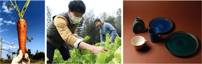 店舗に商品を提供する生産者たちは、その経歴も様々です。野菜を提供する農家の中には、8つの“移住者“農家のみで構成された「オーガニックファーマーズ」というチームがいます。糸島に魅了され移住してきた彼らは、BROF理論などの有機栽培技術を学びながら、糸島の自然と調和したこだわりの野菜を育てています。クラフトを提供する作家たちも、会社員を辞めて陶芸を始めた作家、夫婦で工房を開く作家、ヨットでの太平洋縦断の末陶芸に出会った作家など、個性あふれる“おもしろい”人たちが集まっています。