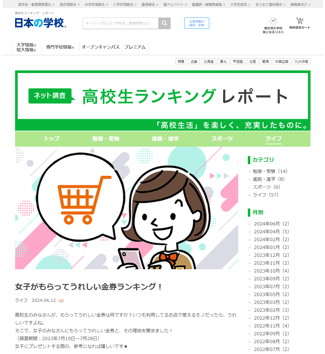 全国の大学・短大・専門学校などの学校情報を提供する株式会社JSコーポレーション(本社:大阪市北区 代表取締役社長:米田英一)は、高校生ランキングレポートにて「女子がもらってうれしい金券ランキング」について、高校生へアンケートを実施し、その結果を公開しました。