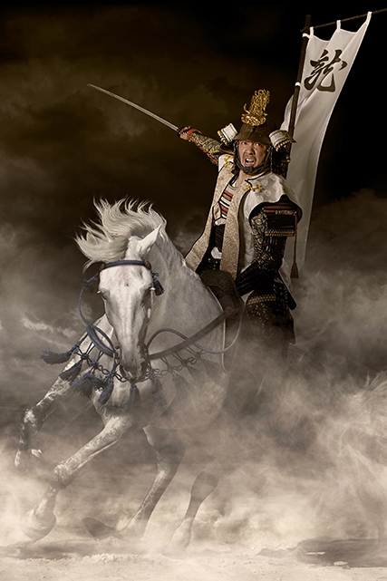上杉謙信の義の精神と静かな闘志を再現。白頭巾姿や川中島の戦いをイメージした背景で、気迫ある写真に仕上げます。