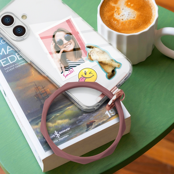 しなやかなシリコン素材のハンドストラップで手首や腕から提げて持ち歩ける為、両手がふさがずスマートフォンの操作ができ、落下防止にも役立ちます。