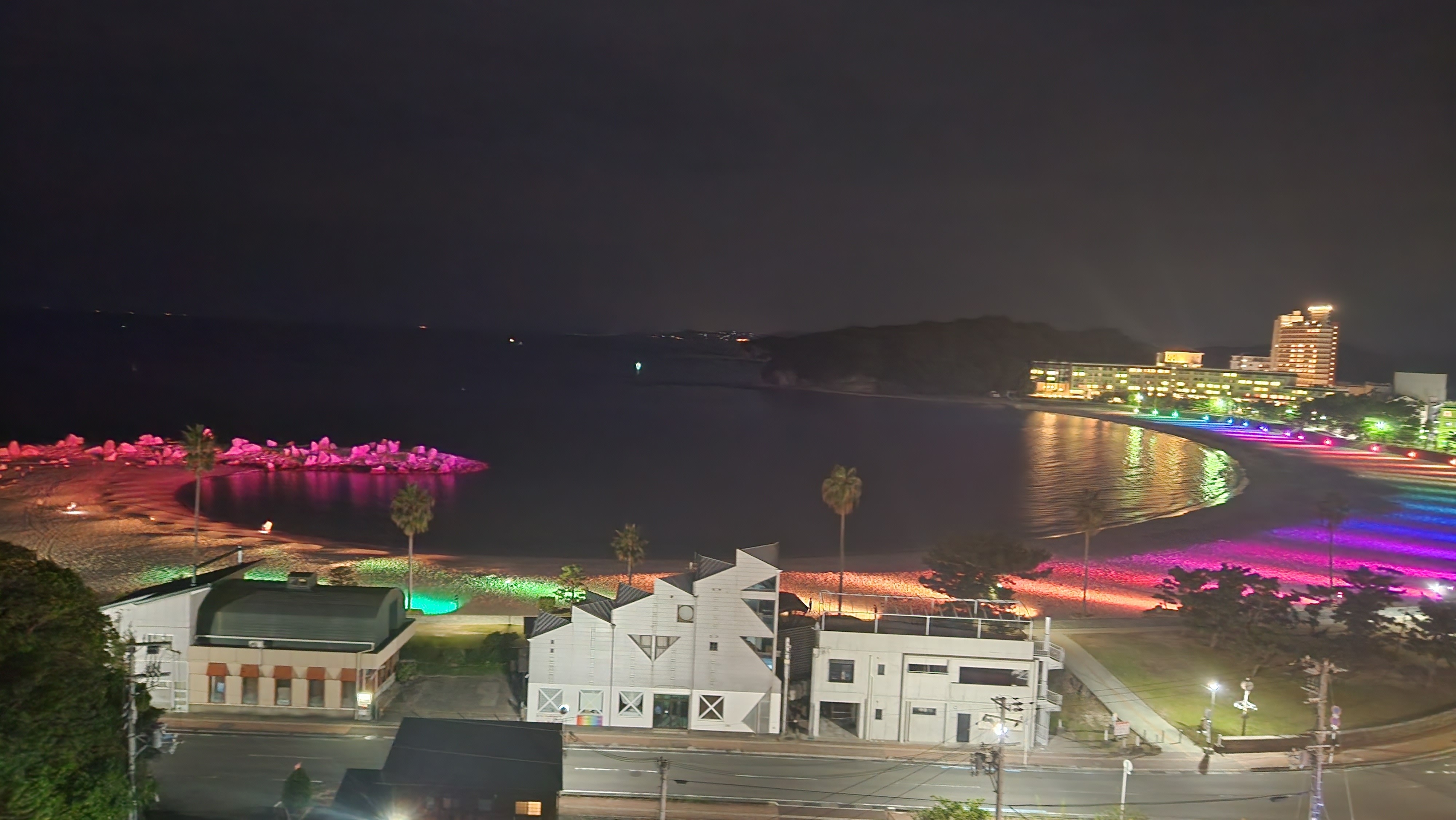 白良浜沿いに建つホテル三楽荘は海水浴場まで徒歩1分の好立地で、もちろん全室からイルミネーションを眺めることができますが、イベント期間中はよりきれいにイルミネーションが見渡せるお部屋を厳選し、「眺望確約」プランとして限定販売いたします。