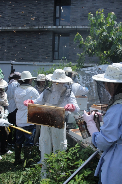 京産大で今年採れたばかりの蜂蜜をたっぷりかけて ひょっこりミツバチさんが可愛い♡期間限定コラボメニュー ラブリーハニーフロート新発売 | NEWSCAST