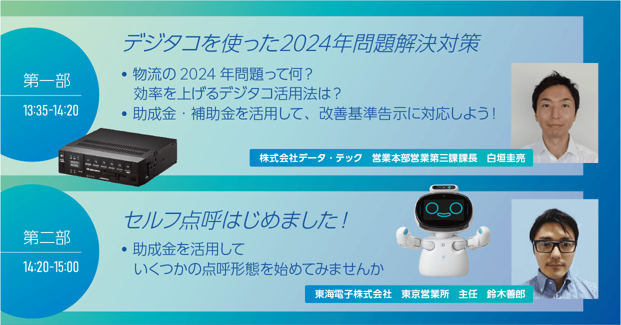 アルコール検知システム、 IT点呼システム、 運行管理システムを開発・販売する東海電子株式会社(本社:静岡県富士市 代表取締役 杉本 哲也)は、 この度、 株式会社データ・テック様との合同ウェビナー「安心してください!使えますよ。 助成金活用でデジタル化を!」を8月4日 (金)に無料開催いたします。