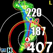 ドッグレッグや直接グリーンを狙えない場合、現在地から自分が打ちたい方向のフェアウェイセンターまでの距離と、そこからグリーンセンターまでの3点間距離を表示する機能です。