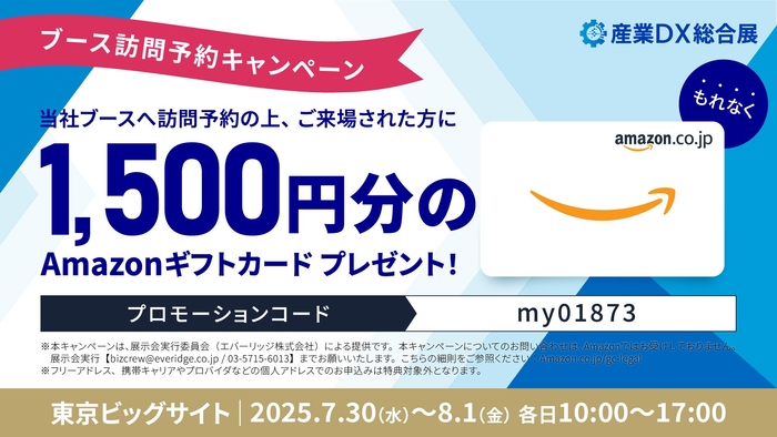 ブース予約でAmazonギフトカード1,500円分進呈!