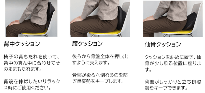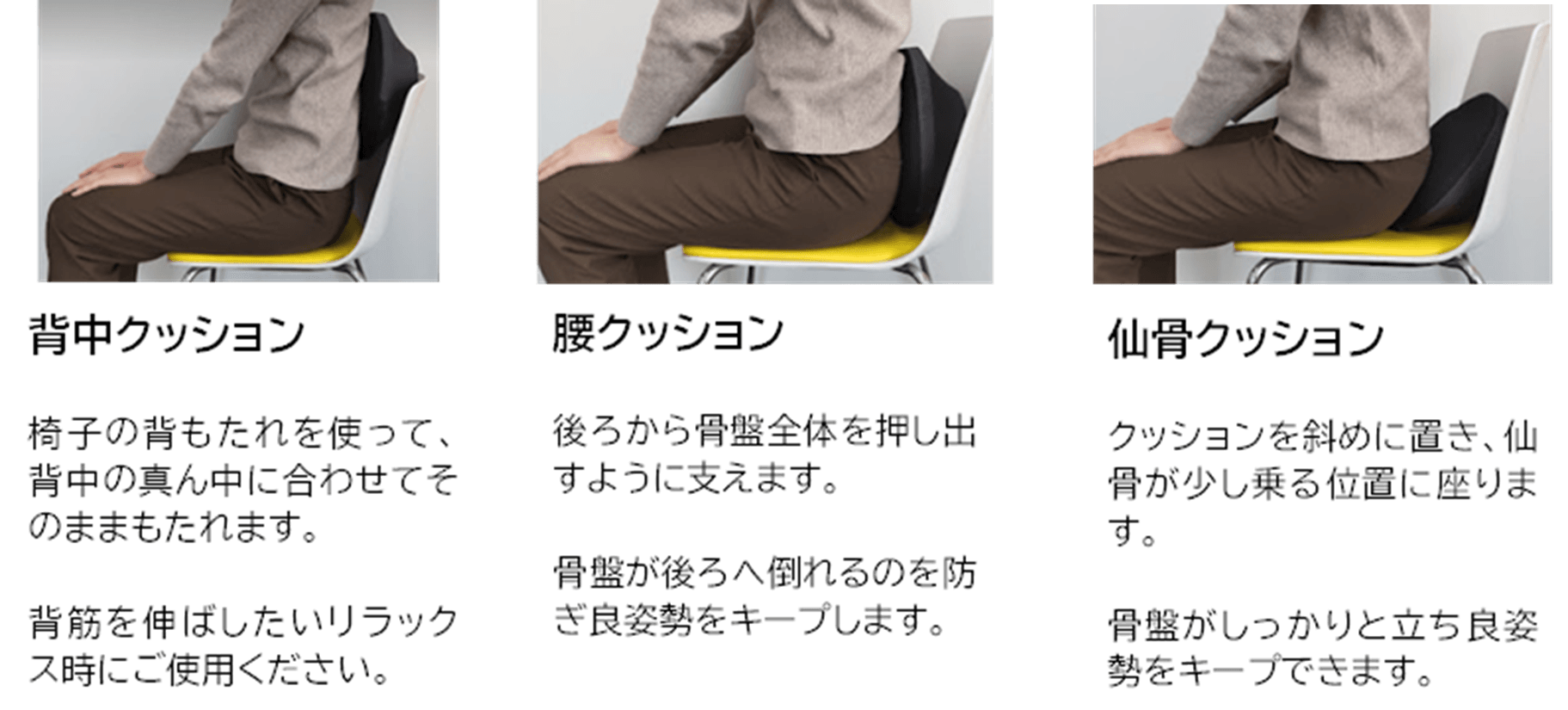 骨盤ストレッチ運動以外にも背もたれクッションとして使用可能です。
