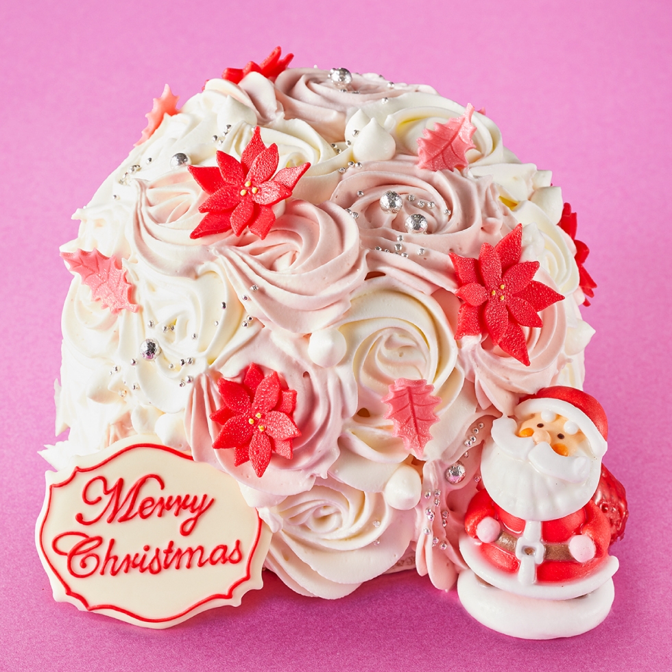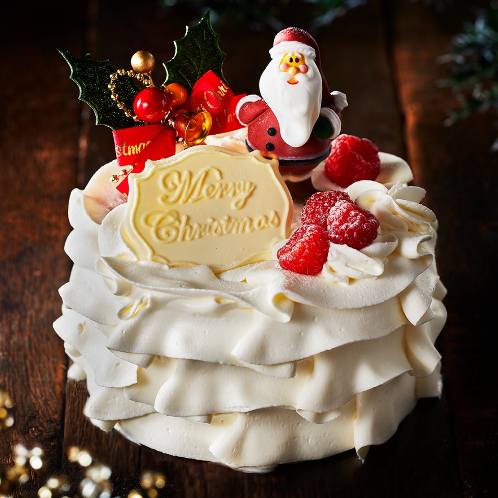子どもから大人まで楽しめる王道のショートケーキ。独自の黄金比率で2種類をブレンドしたこだわりの生クリームと、キメが細かくふんわり食感のスポンジのショートケーキ。クリスマスらしく真っ白なサンタに粉糖の雪を降らせました。パティシエの技が光る華やかなデコレーションと、こだわりの味わいが特別なクリスマスを演出します。