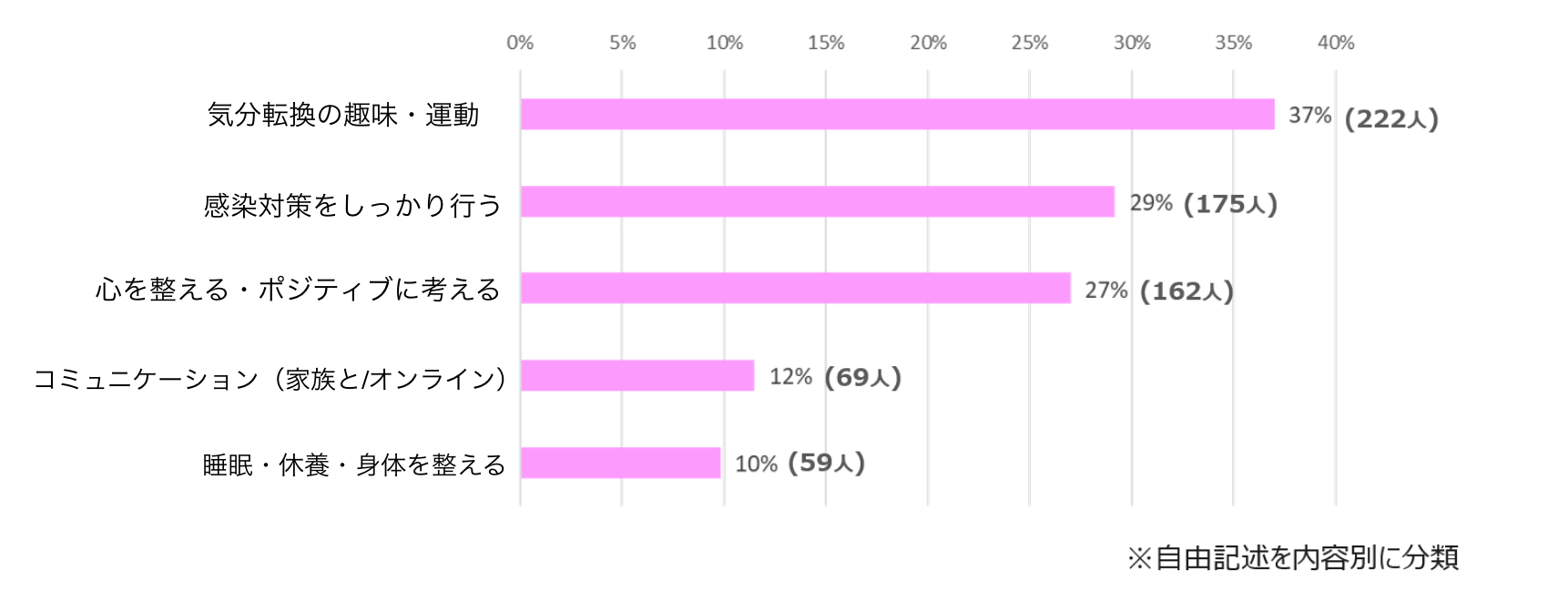 いかがでしたでしょうか。がんサバイバーの皆さんの回答をまとめる過程で「これは取り入れてみたい!」と思うものがたくさんありました。なかなか前向きになれない、長引くコロナでふさぎこみがち…という方に、何かしらのヒントになれば幸いです。