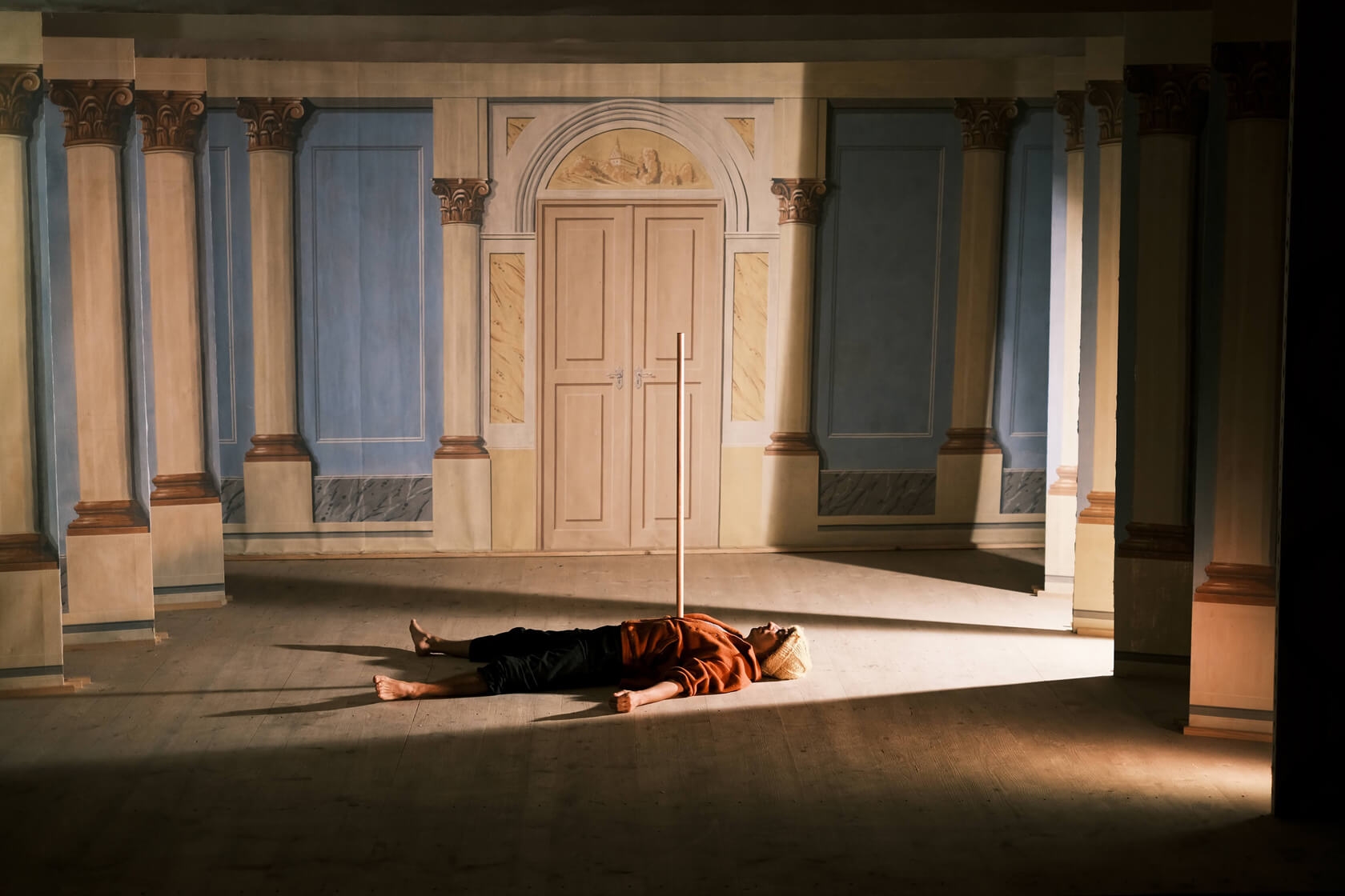 ステージには一人の男と一本の棒が置かれている。背景には大きなフラットスクリーンTBV。画面には「男 / 棒」と表示されている。まるで、人間が目の前の舞台をどう見るべきか、スクリーンがいちいち指示しているかのようだ。時間とともに男と棒は形を変え、それぞれある種の独立性を得るようになる。その間、常にスクリーンは私たちに何を見るべきか教えてくれるが、はたして私たちは、それ以外のものを見ることができるだろうか。