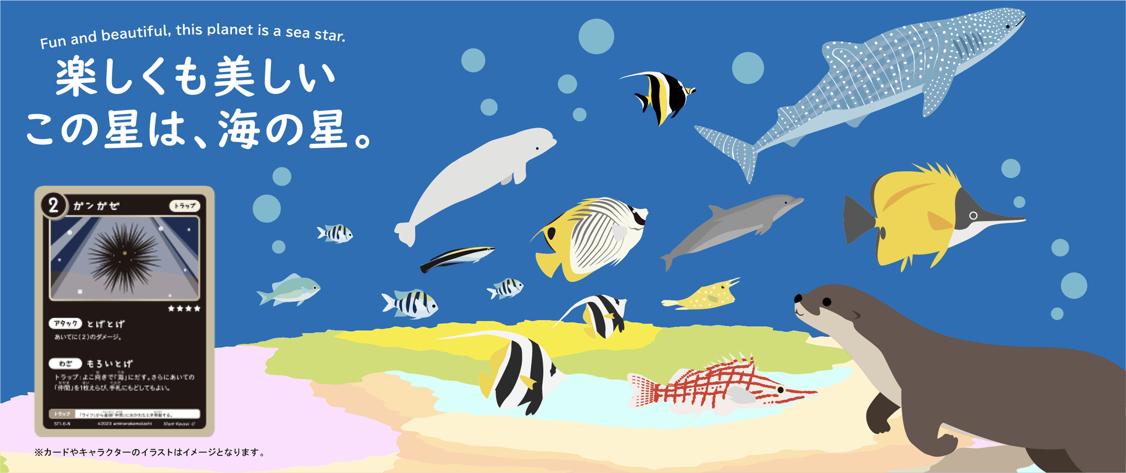 もっと海を好きになってほしい。海の魅力を伝える全ての人をサポートしたいという想いからはじまった海の生き物専門フリーイラスト素材サービス「海の仲間たち」は、2023年7月7日(金)に「トレーディングカードゲーム海の仲間たち~はじまりの仲間たち」を発売いたします。