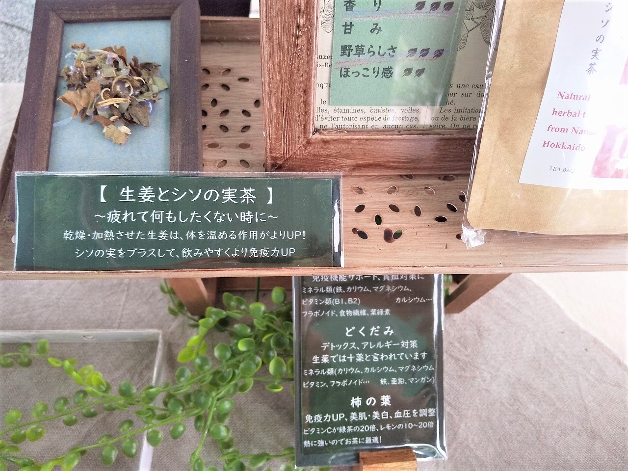 少し足をのばして台湾からは、本物の花で香りをつけたジャスミン茶をはじめとする台湾茶専門店、その他岐阜からは完熟黒にんにくのお店、北海道の野草茶などなど、店構えは小さいながらもジックリ見たくなるお店ばかり並んでいます。